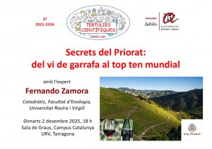 La Tertulia Científica de Iubilo URV dedicará esta sesión a analizar la singularidad y la trayectoria de los vinos de la DOQ Priorat, un territorio que ha experimentado una transformación ejemplar hasta situarse entre las regiones vitivinícolas de referencia internacional. El catedrático Fernando Zamora, de la Facultad de Enología de la URV, ofrecerá una panorámica sobre la evolución histórica de estos vinos, la recuperación impulsada a finales del siglo XX por un grupo de pioneros y los factores naturales que definen su identidad.